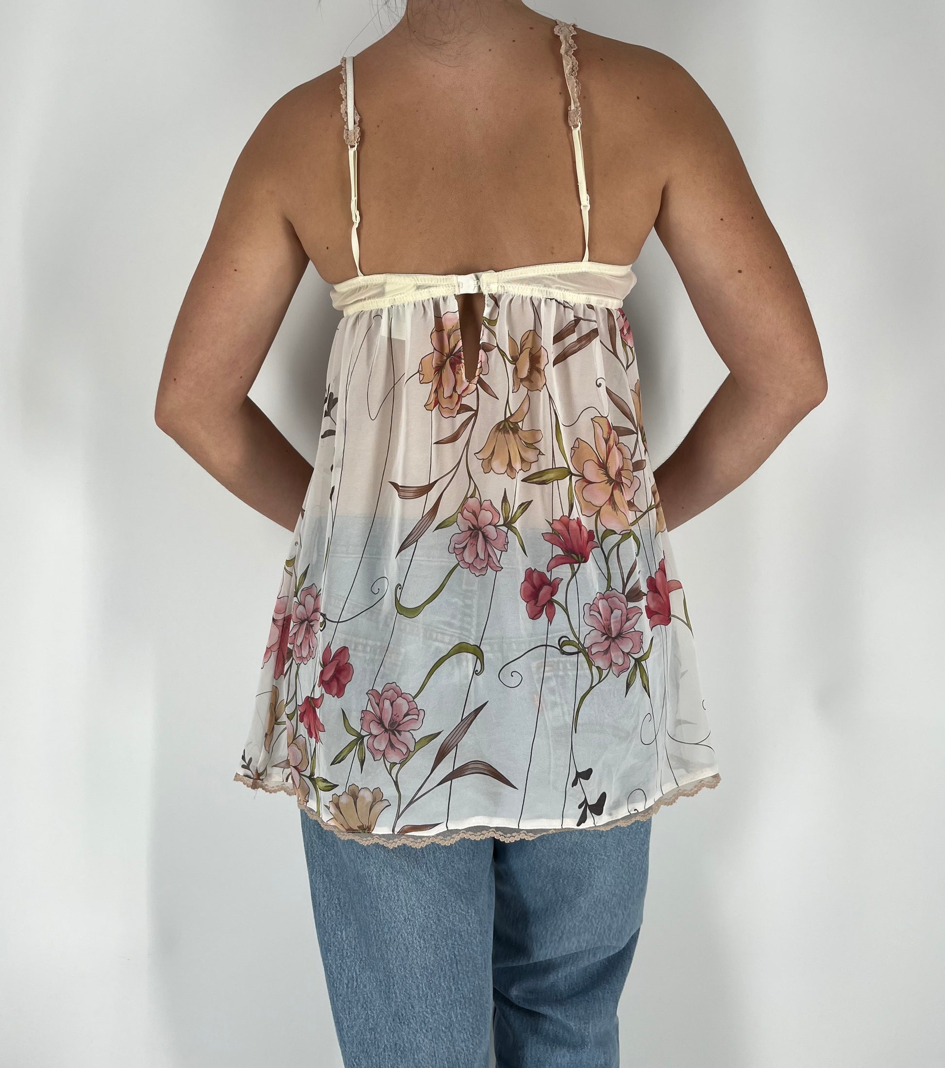 Elevate your style with our Floral Babydoll Top With Lace Accents. The delicate lace accents add a touch of femininity, while the flowy babydoll design provides a comfortable and flattering fit. Best suited for a size small
