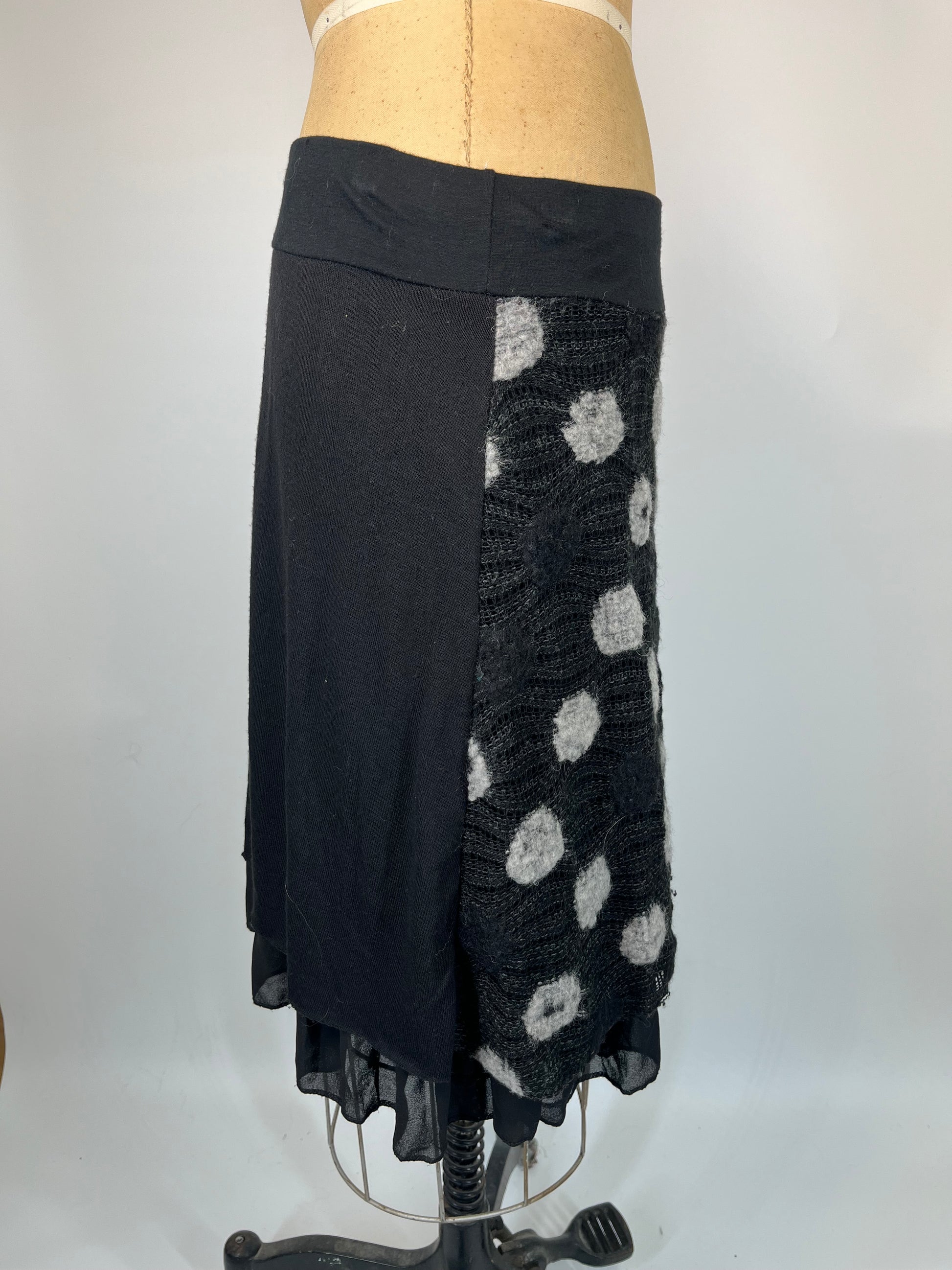 Knit Midi Skirt With Polka Dots And Lace Ruffle Underskirt