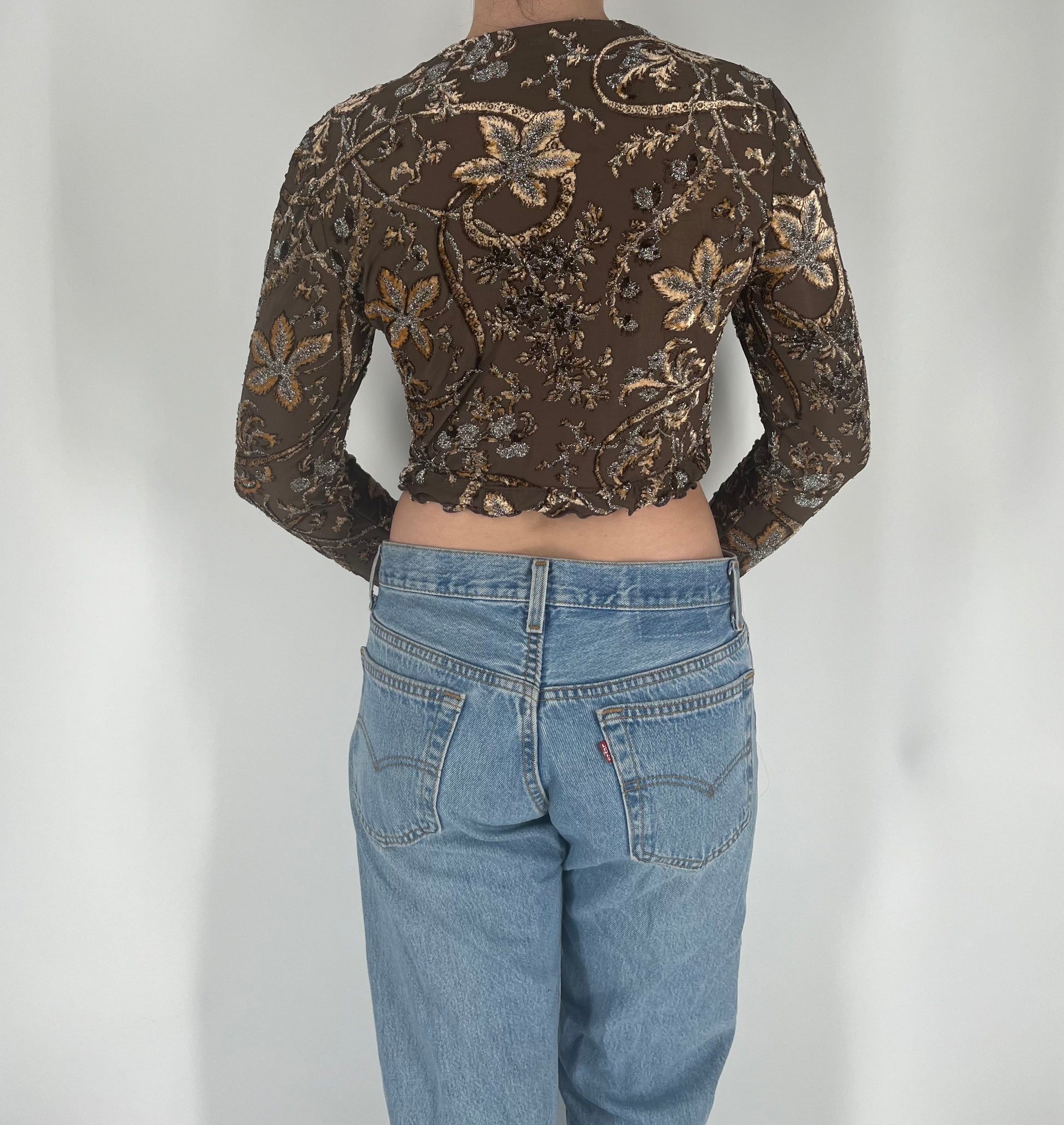 Get your glam on with this Made in Italy Floral Cardigan! Made with glitter accents, this cardigan adds a touch of sparkle to any outfit. Perfect for a fancy night out or dressing up a casual look. Made in Italy for the finest quality. Best suited for a size small - large