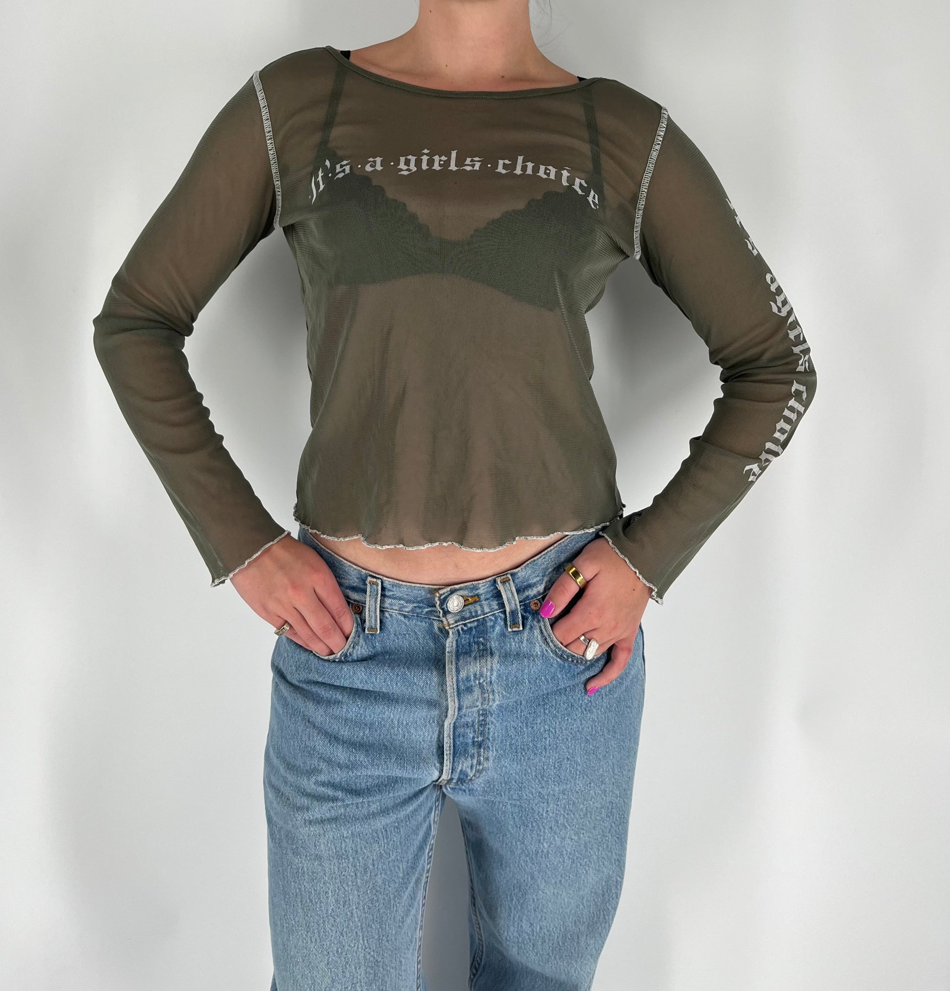 Mesh “It’s A Girl’s Choice” Long Sleeve Top With White Stitching