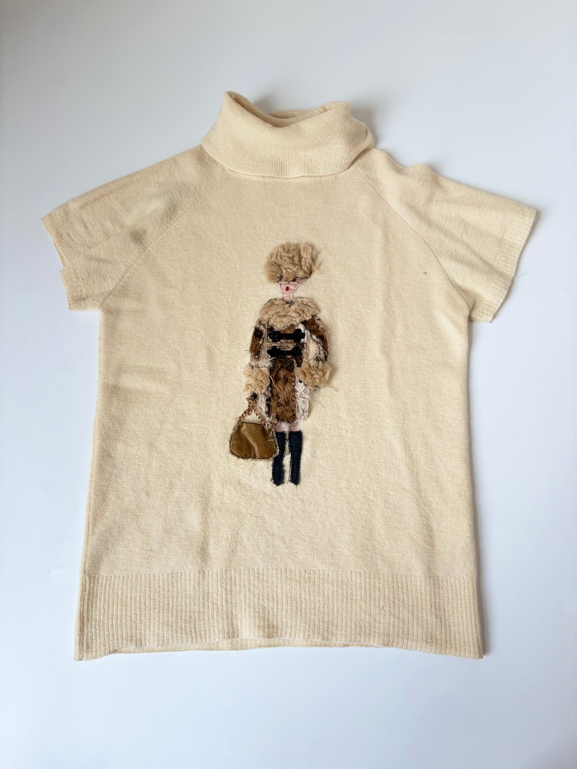 Mixed Media Sweater with Woman Carrying Purse